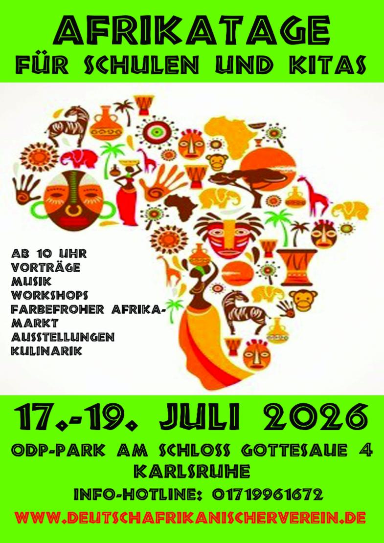Fr. 17. 07. - So. 19. 07. 10:00 -14:00 Uhr Afrikatage für Schulen und Kitas, ODP_Otto-Dullenkopf-Park, am Schloss Gottesaue 4, 76131 Karlsruhe